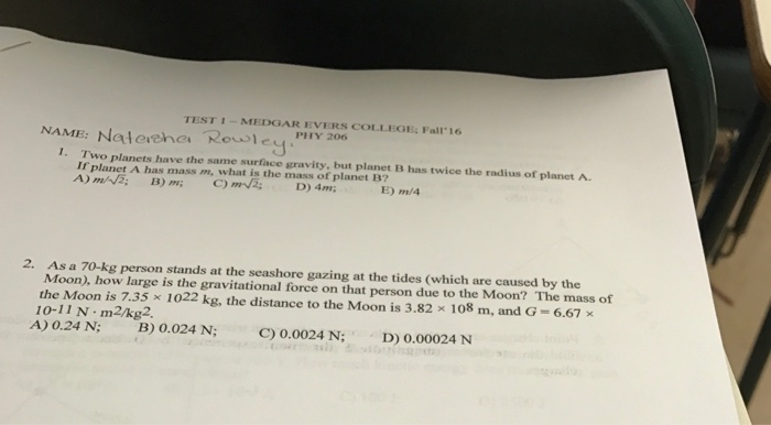 Solved Two Planets Have The Same Surface Gravity But Planet Chegg Com